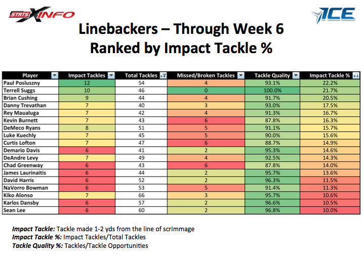 A reader over on Iggles Blitz posted a good link. It is an interesting look at “impact tackles”, missed tackles and total tackles.